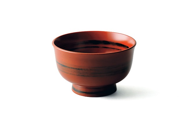 刷毛目をつけた縁が反っている汁椀です。 栓で作っているので他の汁椀よりも軽めにできています。 うるみ(朱に黒を加えて作る)の下の黒が見える根来風の仕上げです。 「軽さ」 「丈夫さ」 「持ちやすさ」 「食べやすさ」 「美味しさ」 「楽しさ」 の6つを兼ね備えているから「兼六」と命名させていただきました。 サイズ(SIZE): Φ120×H65mm 材/塗:栓/漆