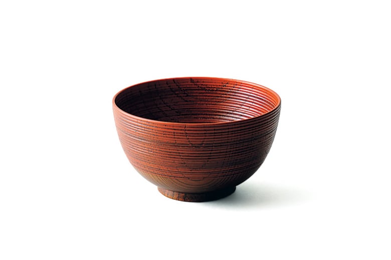 欅の木目と糸目筋、そして研ぎ出した根来の模様が落ち着きを感じさせるお椀です。